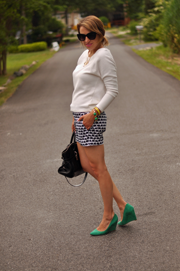 Banana Republic x Milly shorts & yellow bracelet(gifted), Forever21 top, Pour La Victoire wedges, Milly bag, Bauble Bar x Paige Novick necklace (gifted + available June 6th) Green Stella & Dot bracelet.